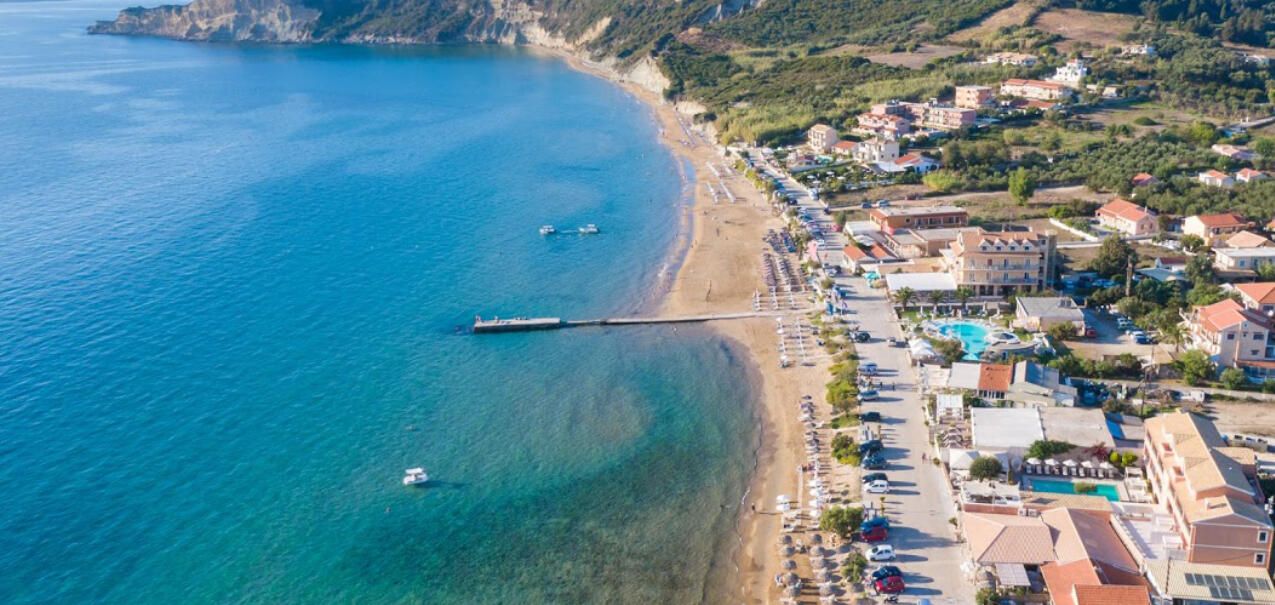 Das traditionsreiche Dorf auf einem Hügel oberhalb der Bucht bietet spektakuläre Ausblicke, Tavernen mit Sonnenuntergangspanorama und direkten Zugang zu Traumbuchten wie Porto Timoni.Arillas (ca. 8 km):