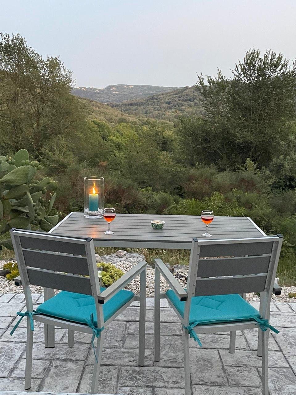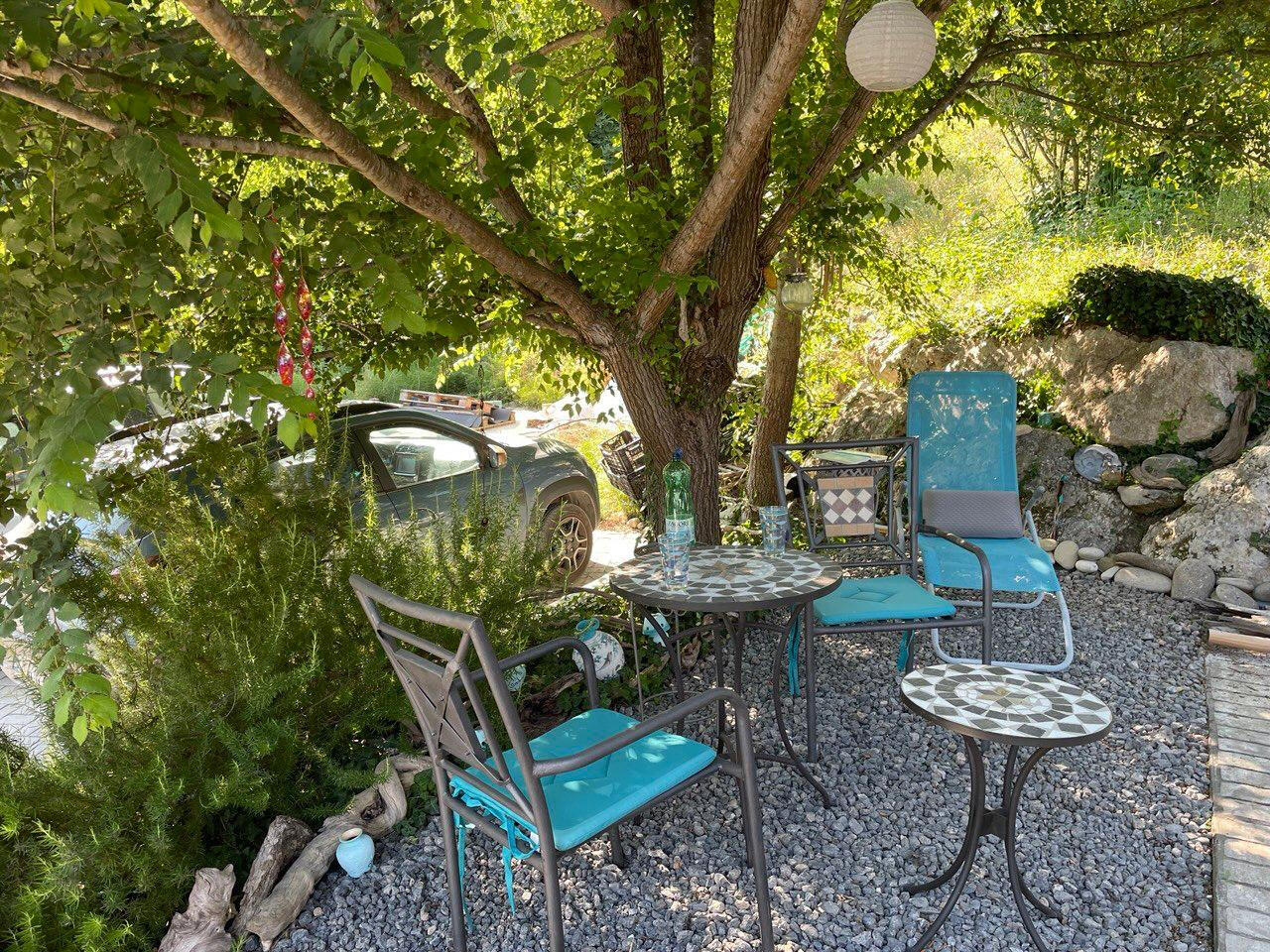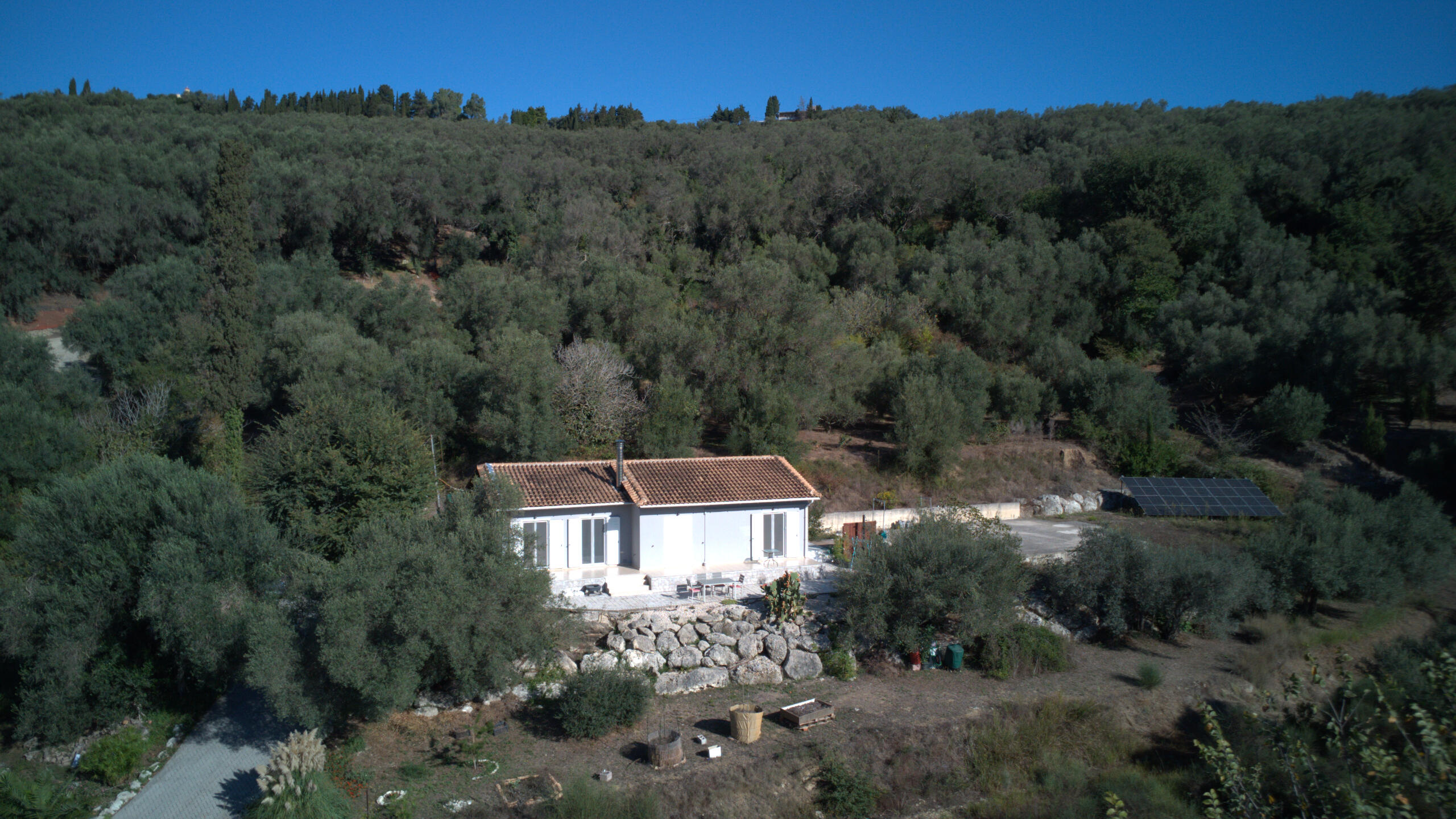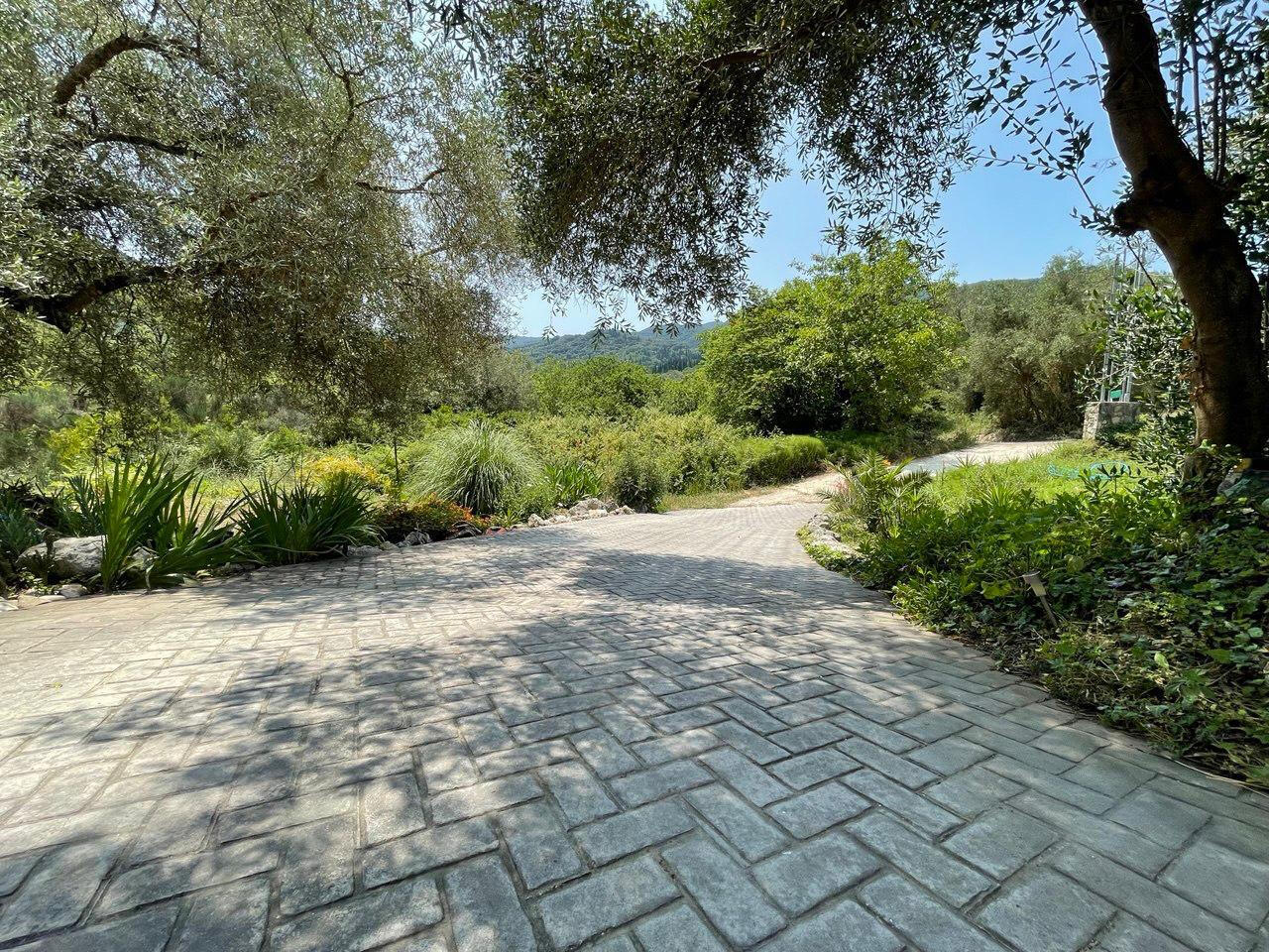 Das 2.854 m² große Grundstück liegt eingebettet in das wunderschöne, von den Einheimischen liebevoll „Walnusstal“ genannte Tal – benannt nach den imposanten Walnussbäumen, die hier zahlreich wachsen und der Landschaft ihren ganz besonderen Charme verleihen.Über eine private, asphaltierte Zufahrtsstraße erreicht man einen großzügigen Parkplatz mit Platz für bis zu drei Autos. Besonders praktisch: Ein dort installierter Charger ermöglicht das kostenfreie Laden eines E-Autos, gespeist durch die hauseigene Solaranlage.Das Grundstück vereint liebevoll gestaltete Bereiche mit natürlicher Ursprünglichkeit: