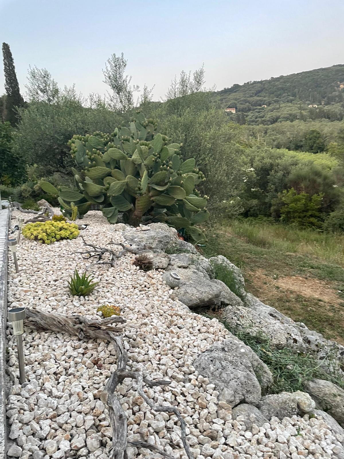 • Ein kleiner Bach durchfließt das Grundstück und sorgt für eine wunderbar lebendige Atmosphäre.Mehrere natürliche Ebenen, eingefasst von großen Steinen (siehe Fotos), unterteilen das Grundstück harmonisch. Einige Bereiche wurden mit Büschen und mediterranen Pflanzen liebevoll angelegt, während der Großteil bewusst in einem Zustand zwischen Wildnis und Pflege gehalten wurde – ideal für Naturliebhaber, die Authentizität und Weite schätzen.Das Grundstück ist aktuell nicht eingezäunt, wodurch es sich nahtlos in die umliegende Landschaft einfügt. Ein Zaun lässt sich jedoch bei Bedarf problemlos anbringen.